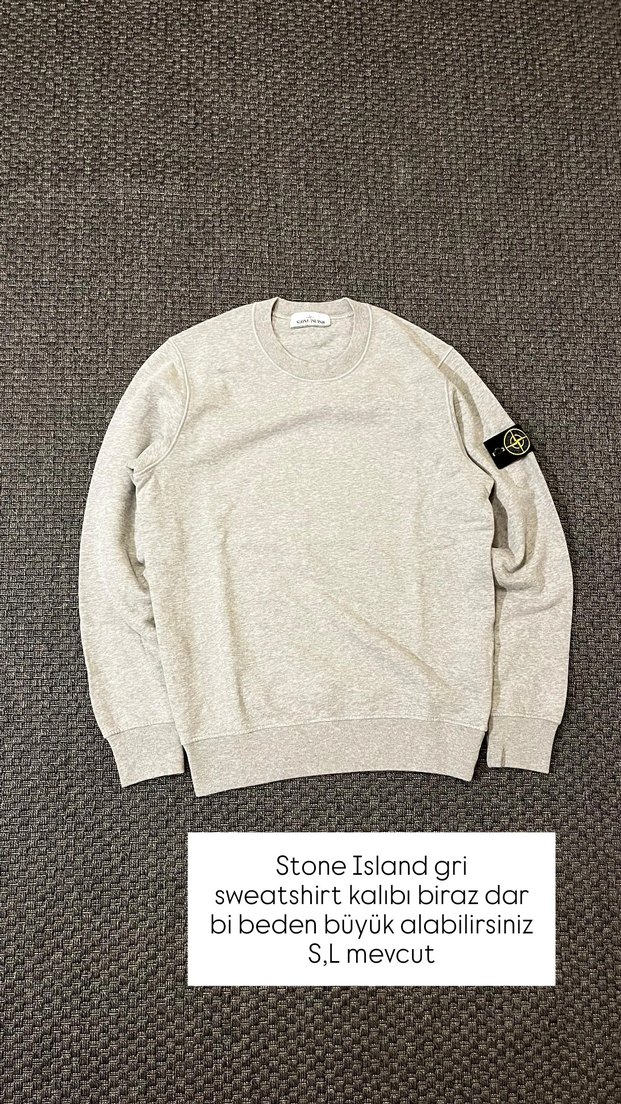 Stone Island Gri erkek sweatshirt kaliplari biraz dar bi beden küçük almanizi tavsiye ederim S ve L beden mevcut Ürünlerimiz %100 orijinal garantilidir instagram:resell_swag kontrol edebilirsiniz ✅️