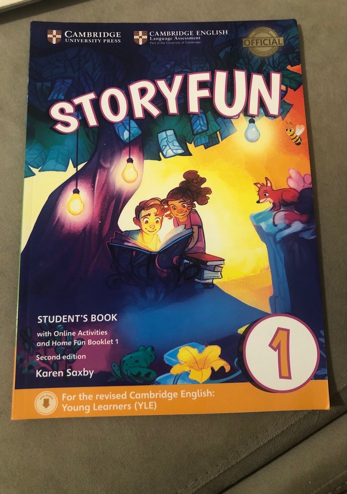 Storyfun 1, Karen Saxby tarafından yazılmış, Cambridge English Young Learners (YLE) için hazırlanmış öğrenci kitabıdır. Online aktiviteler ve ev eğlencesi kitabı içerir. 27. Sayfaya kadar yapılmış araları okumalı olduğu için toplam 12 sayfa yapılmış kalanı temizdir