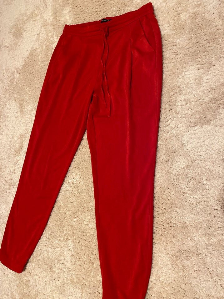 Kırmızı kadın pantolonu beli ve paçası lastikli bir kaç defa giydim bedeni olmadığı için satıyorum