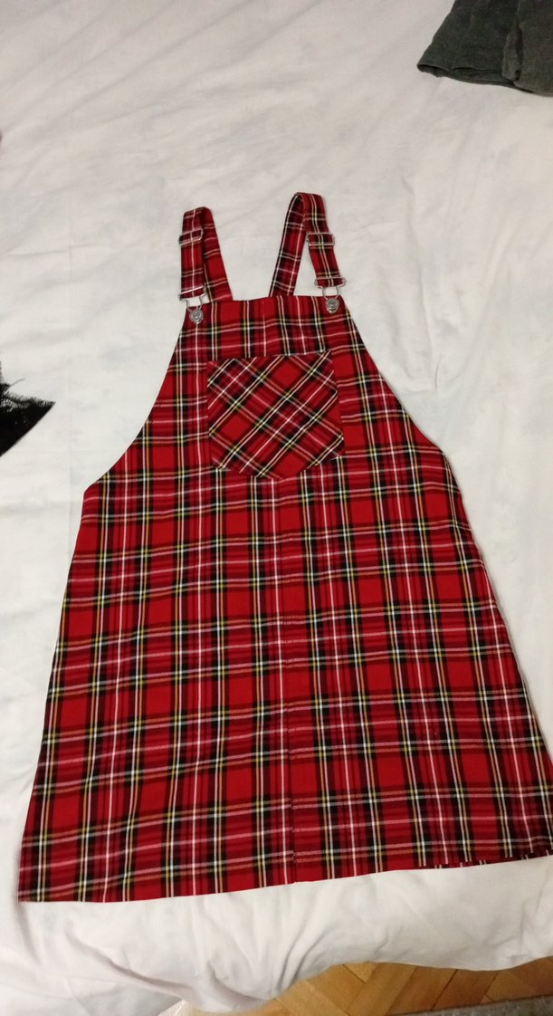 Kızlar için kırmızı kareli, askılı ve tokalı tulum. Regular fit ve ön cepli, sentetik kumaştan yapılmıştır. Sokak stiline uygun.