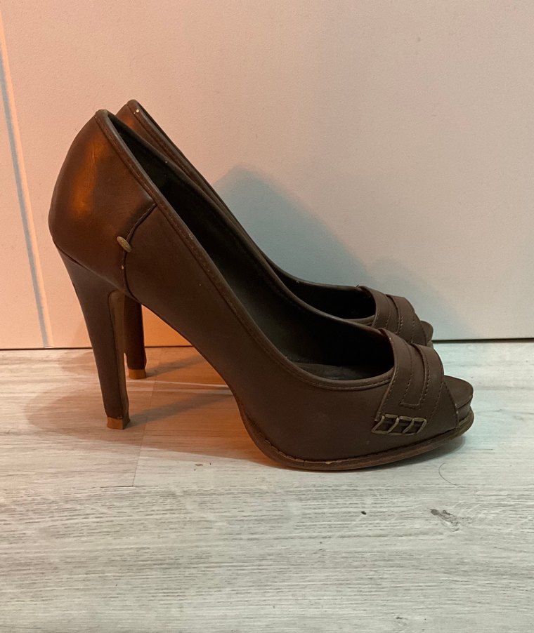Stradivarius marka, 39 Numara Kahverengi Deri Platform Topuklu Ayakkabı, topuk boyu 11 cm’dir, ufak deri dökülmelerini son 2 fotoğrafta paylaştım, hızlı kargo yapılır