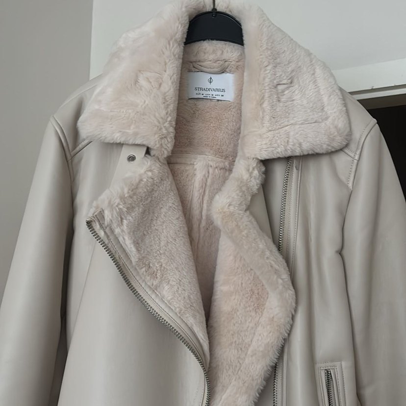 Kürklü yakalı, bej deri ceket. Normal uzunlukta, regular fit ve midi kesim. Günlük kullanıma uygun, rahat ve şık bir sokak stili ceket. 1 kere giyildi.