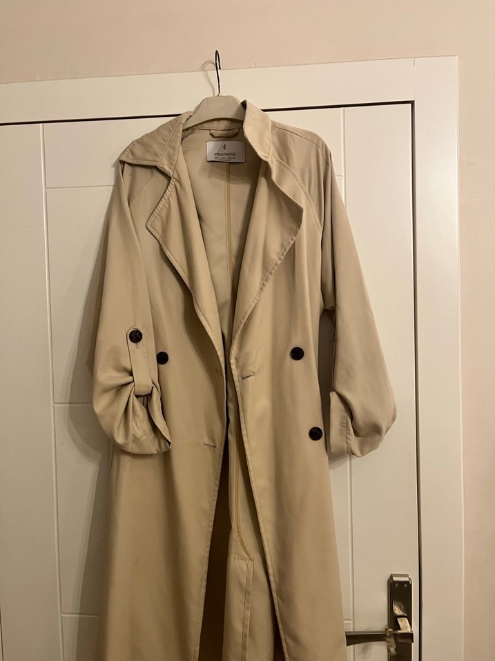 Stradivarius Bej Kadın Uzun Kesim Trençkot