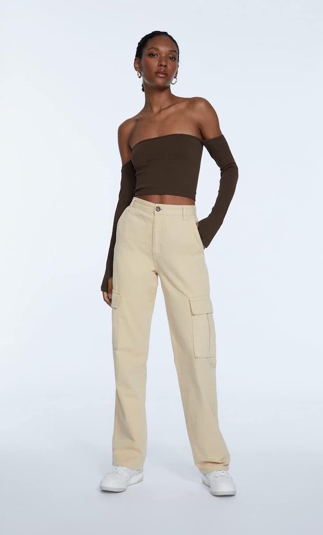 Kargo model bol paça pantolon. Hatası yoktur. Uzunluğu 95 cm. 36 beden. Bej renktir.