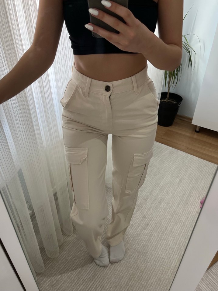 Stradivarius Bej krem Kadın kargo Pantolon