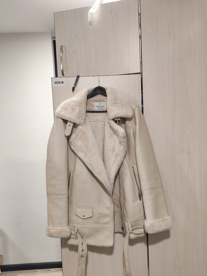 stradivarius Bej krem Kürklü Deri Kadın Ceket