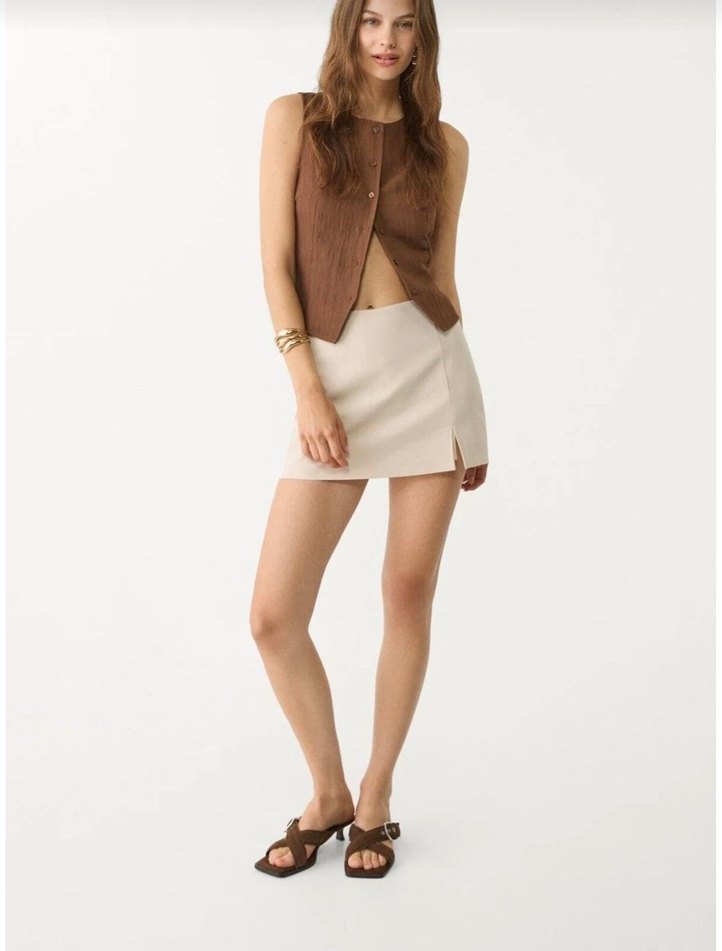 dışarıda yalnızca bir kez giydim. çok şık, yüksek bel ve mini bir etek. bir ay önce mağazadan 1200 tl'ye almıştım. hiçbir kusuru yok.
