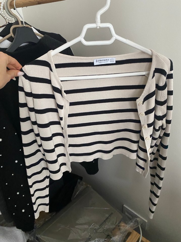 Stradivarius Bej Siyah Çizgili Kadın Hırka