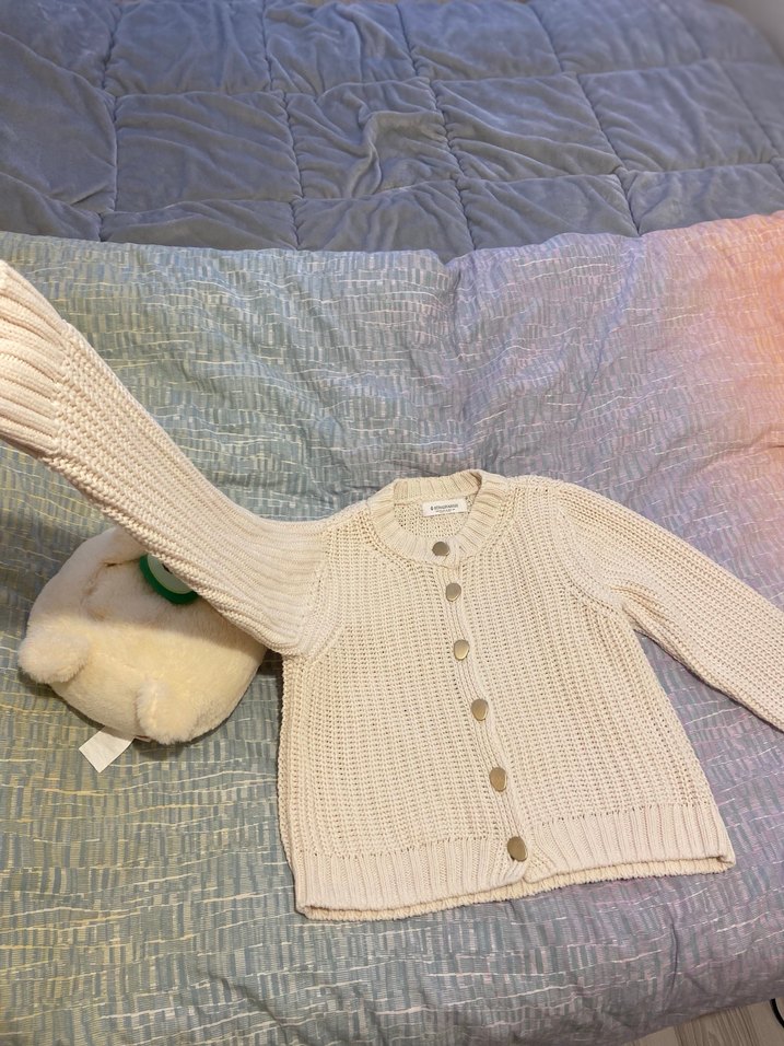Kullanmadım ama yıkadım ihtiyaç fazlası bej renkte, uzun kollu ve yumuşak örme kumaştan yapılmış, sade ve rahat kesimli bir hırka.