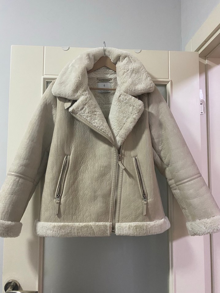 Stradivarius beyaz biker içi peluş dışı süet biker ceket. 1-2 kere giyildi. Small beden. Sıfırdan farksız. Eski modellerle karıştırmayın.Kürkü peluş ve yumuşacık