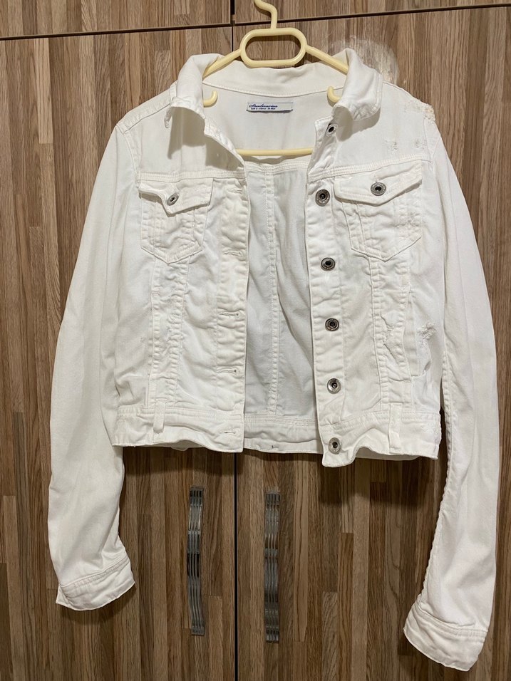 Stradivarius Beyaz Düğmeli Kısa Kot Ceket