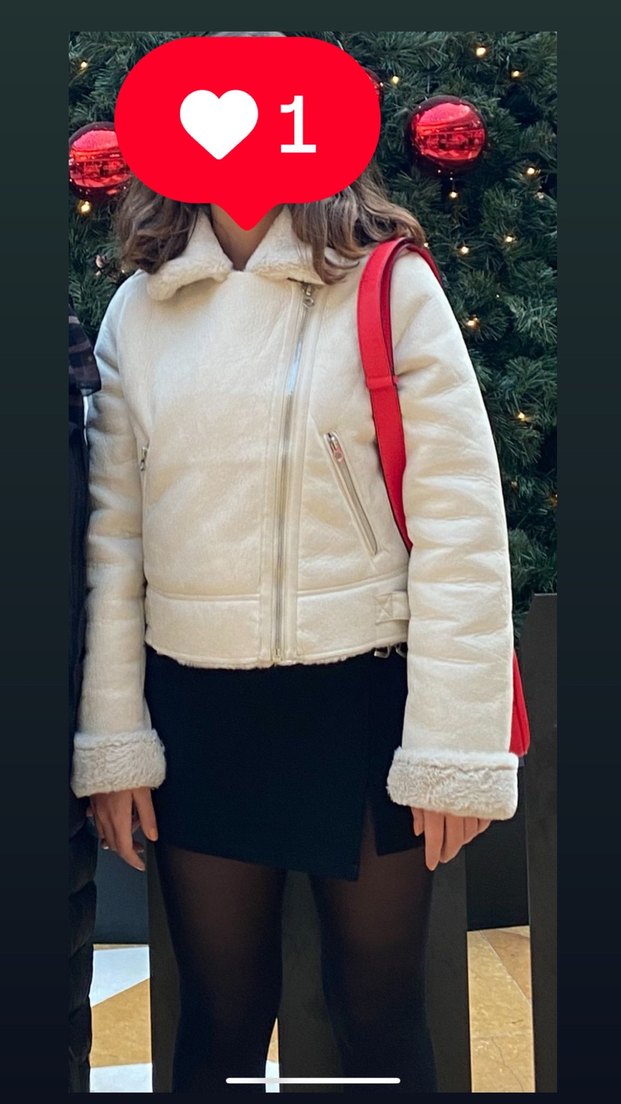 Beyaz, kürklü detaylara sahip yüksek yakalı ve uzun kollu, fitted kesim kışlık mont. İç kısmı yumuşak ve sıcak, günlük rahat sokak stiline uygun. ❄️