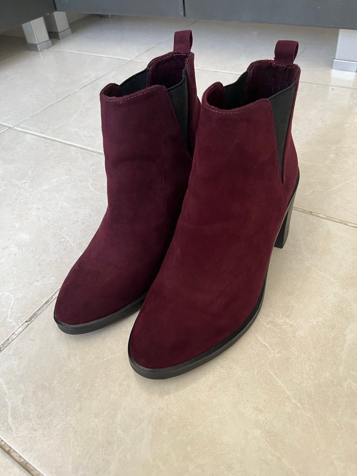 Stradivarius Bordo Süet Topuklu Kadın Bot