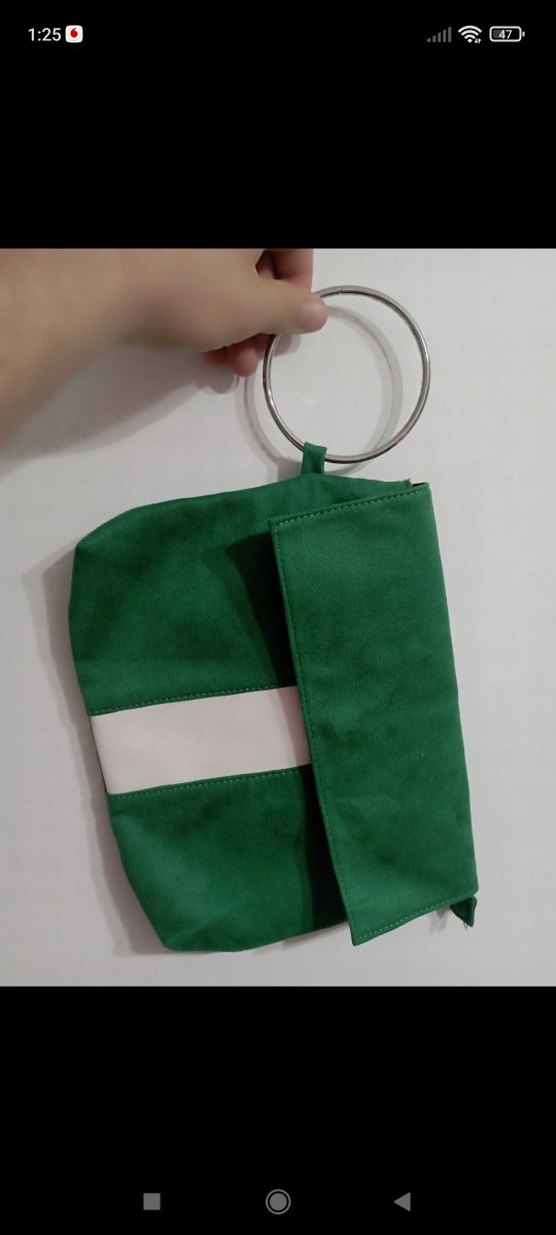 Yeşil Beyaz band desenli halkalı el çantası