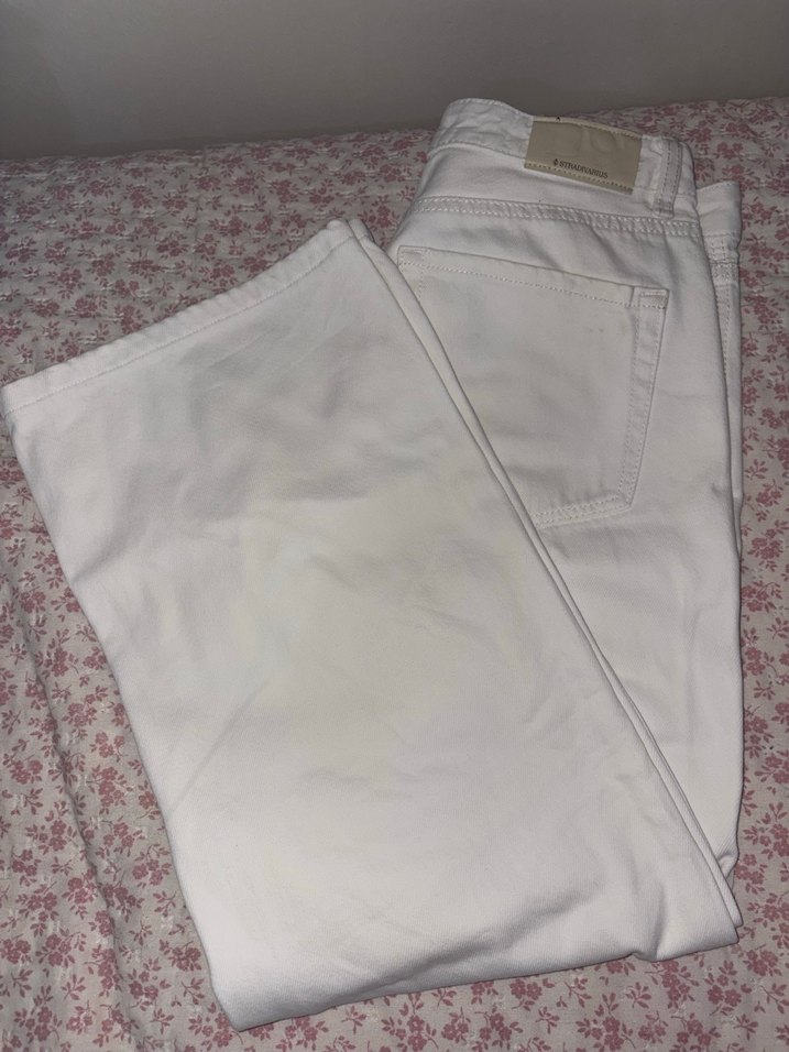 Yumuşak pamuklu kumaştan, regular fit, midi boy beyaz kadın kot pantolon. Günlük kullanıma uygun, rahat ve şık sokak stili. D95