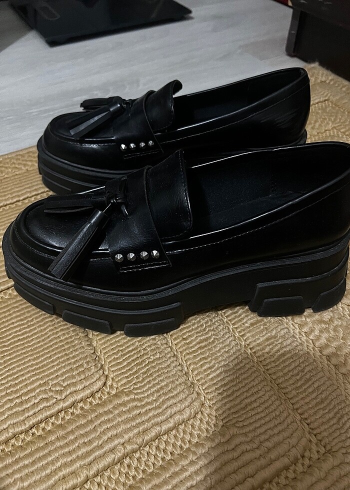 Ürün bir kez giyilmiştir. Dekoratif detaylıdır. Tabanı 5-9 cm aralığındadır. Platformludur. Çok rahattır. Eteklerle ve pantolonlarla kombin yapılabilir çok şıktır