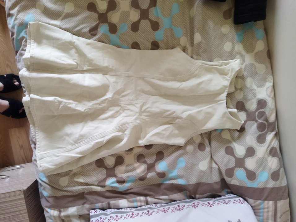 Stradivarius beyaz renkte, drapeli tasarıma sahip, denim kumaştan yapılmış, normal boyda ve vücuda oturan midi elbise. Hiç giyilmedi ve etiketli.