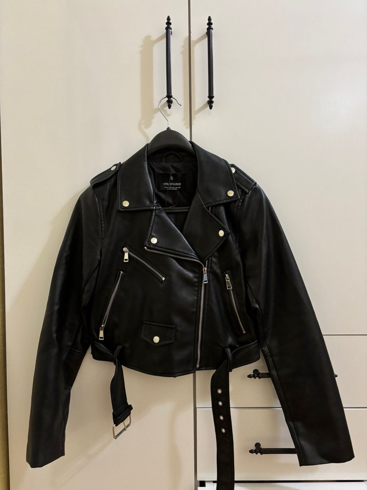 Stradivarius deri ceket - S Beden Sadece iki kez giydim hala yepyeni deformesi yok kilo aldığım için artık bana olmuyor o yüzden satıyorum, sıfırdan farksız kızlar tertemiz