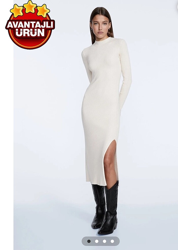 Stradivarius dik yaka yırtmaç detay triko elbise s beden etiketlidir sıfır ürün