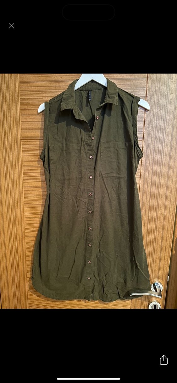 Stradivarius Düğmeli Kolsuz Haki Kadın Gömlek Elbise
