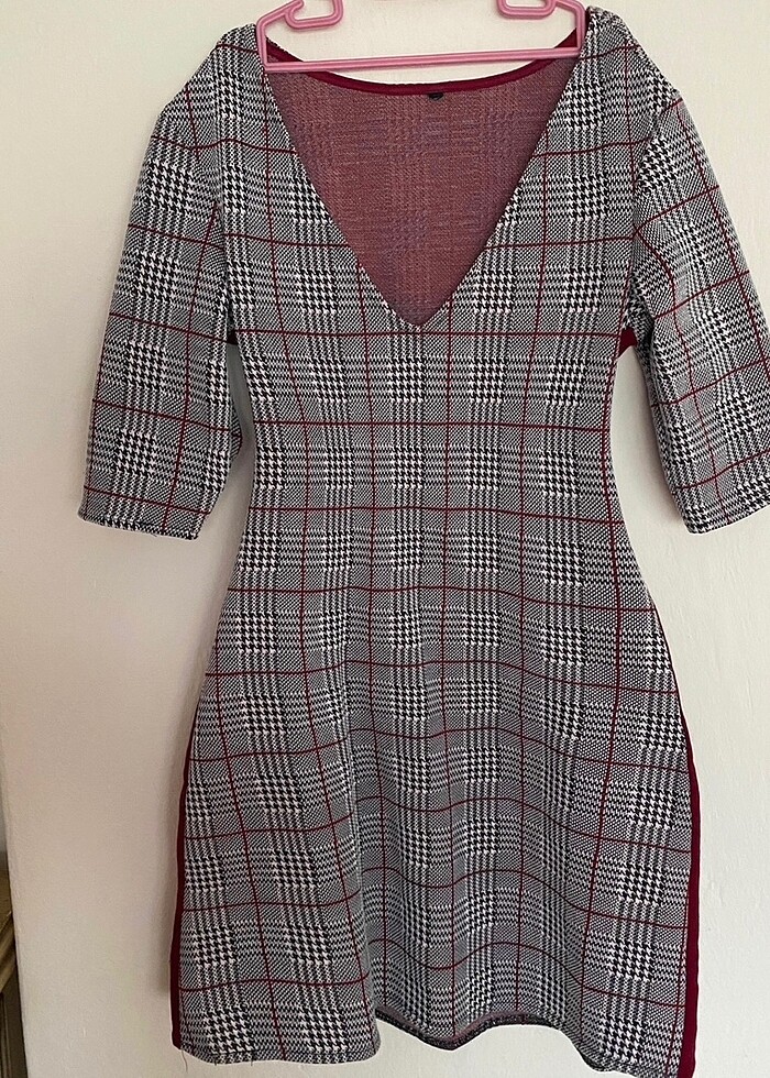 Sadece 1 kere giydim vücuda oturuyor likrali, yepyenidir, yanda çizgileri mevcut #stradivarius #elbise #kadın #ekose