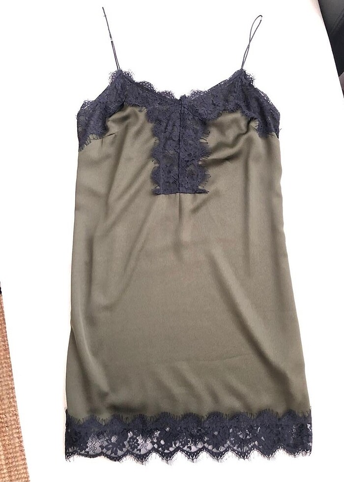 Haki renk, dantel detaylı Stradivarius elbise. Hiç giyilmedi. Yepyenidir