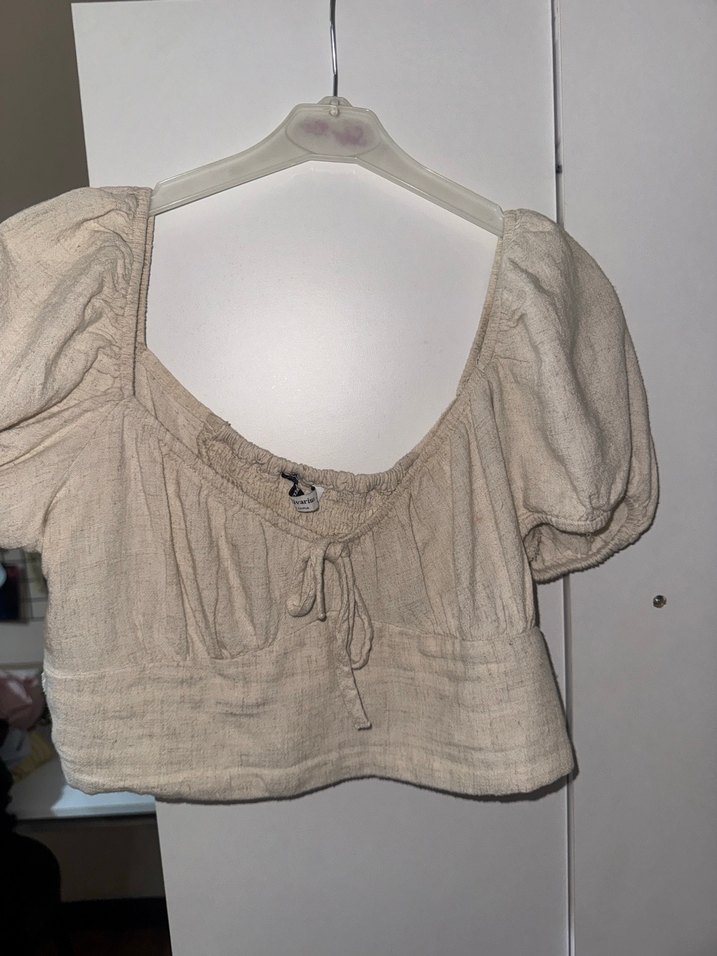 Bej renkli keten kumaştan, kısa kollu, bol kesim ve tek renk bohem tarzda günlük kullanıma uygun şortlu etek belden bağlama detaylı yandan fermuarlı Alt üst m beden