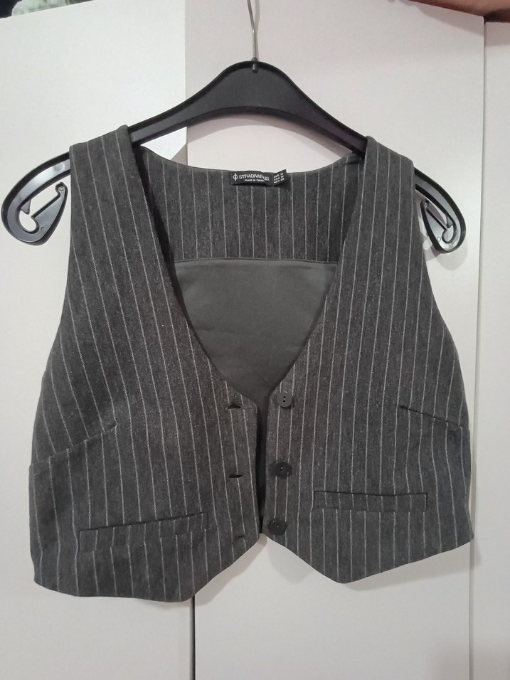 Stradivarius Gri Çizgili Mini Düğmeli Kadın Yelek