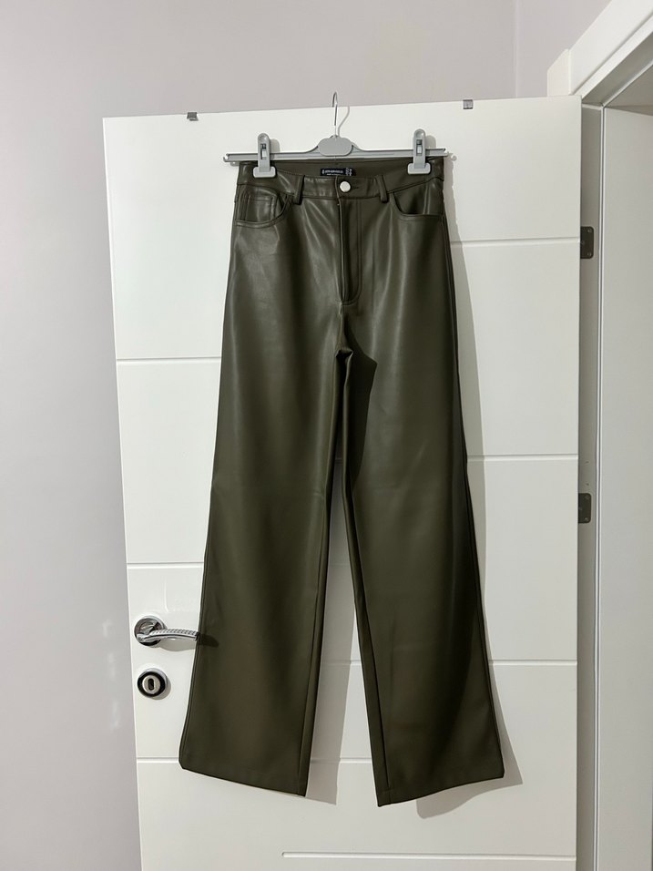 Stradivarius Haki Deri Kadın Pantolon