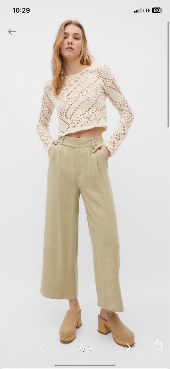 Haki renkte, midi boy, triko kumaştan üretilmiş, bol kesim kadın pantolon. Günlük kullanıma uygun, rahat ve şık bir görünüme sahiptir.