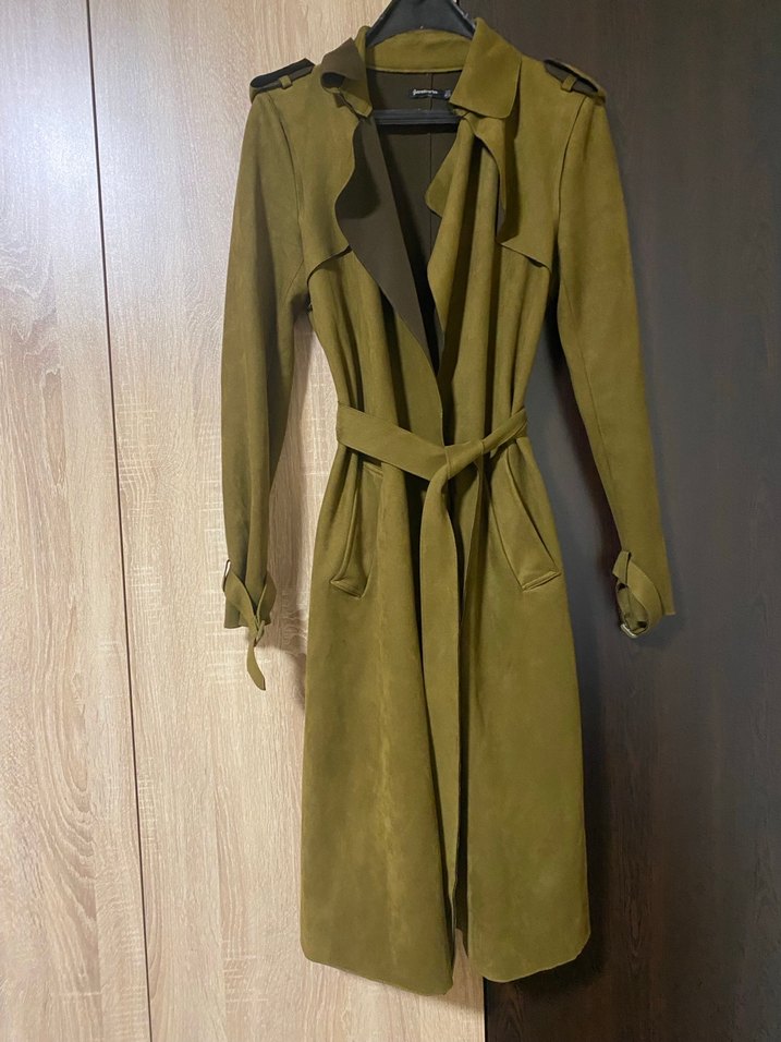 Stradivarius Haki Süet Uzun Kuşaklı Trençkot