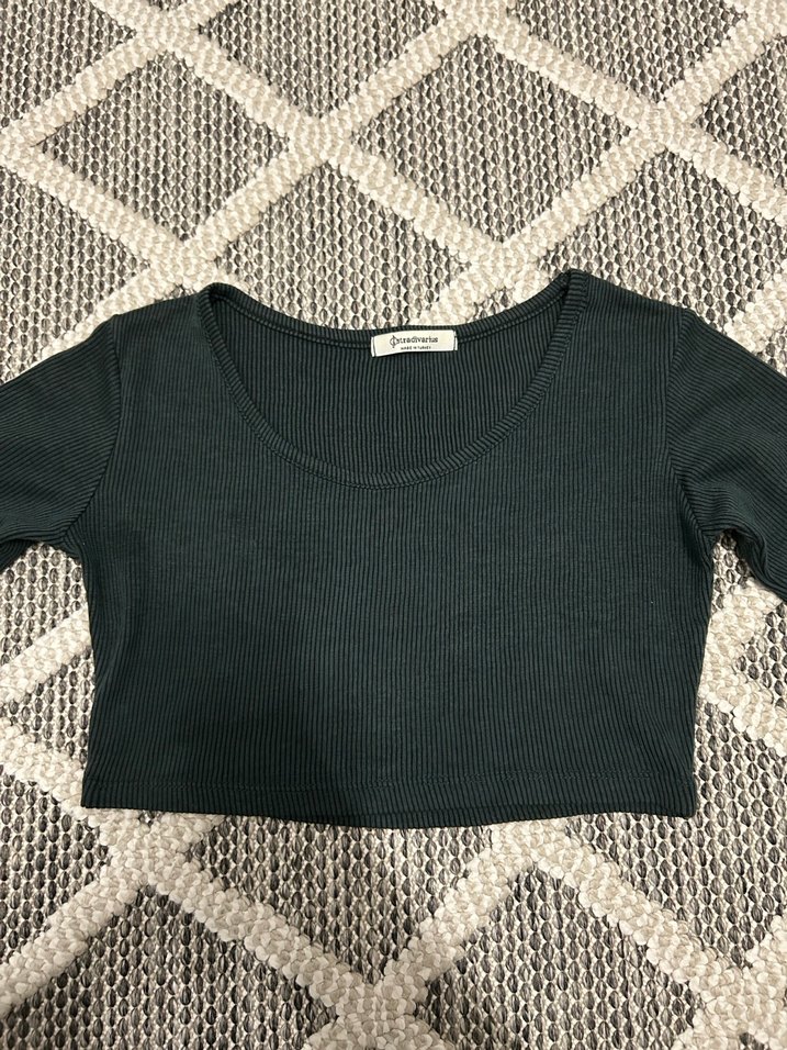 Stradivarius Haki Yeşil Uzun Kollu Kadın Crop Top