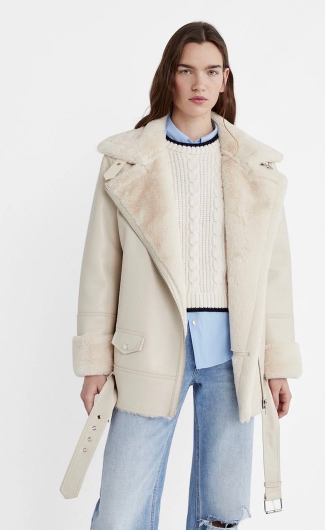 Stradivarius içi Kürklü suni deri biker ceket
