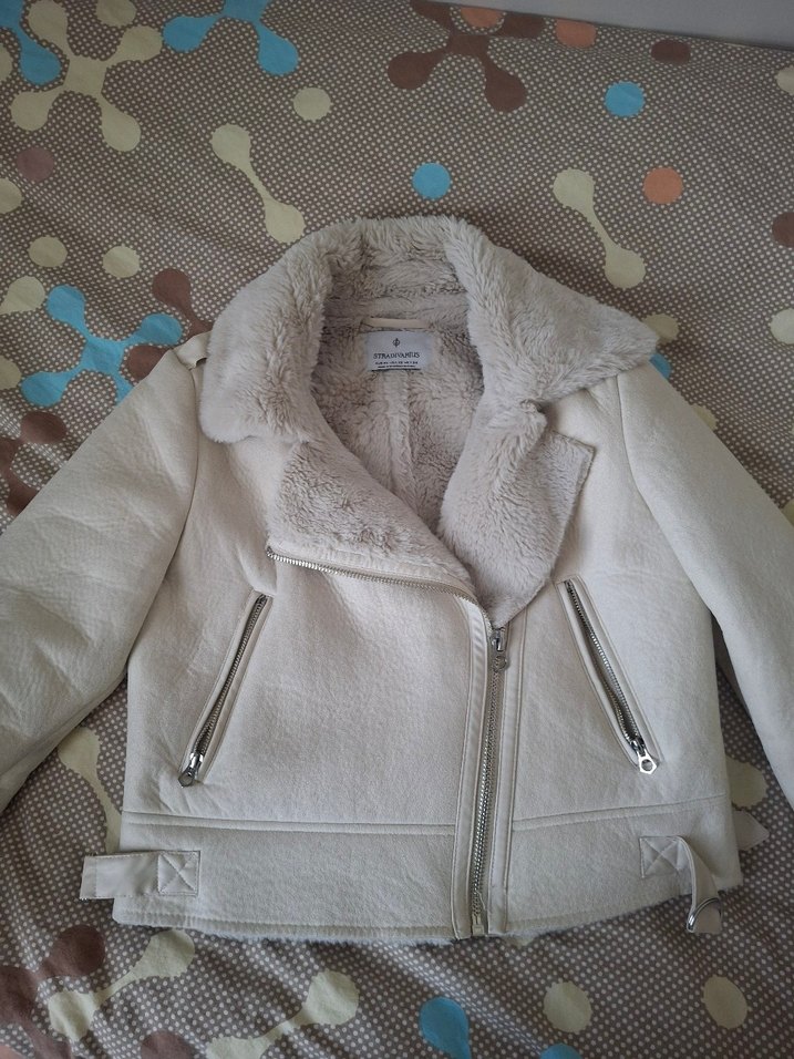 Stradivarius kadın beyaz kürklü ceket