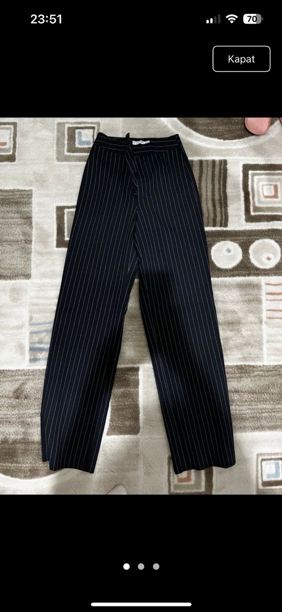 Stradivarius Kadın Lacivert Çizgili Pilili Kumaş Pantolon