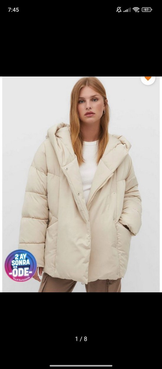 Bej renkli, kapüşonlu ve şişme tasarımlı kadın montu, rahat geniş kesimi ve yüksek yakasıyla dikkat çeker. Yumuşak dokulu kumaştan yapılmış, midi boy ve desensizdir. Az kullanılmış içi yünlü Geniş kesim baya Oversize, bana aşırı bol olduğu için satışa koydum