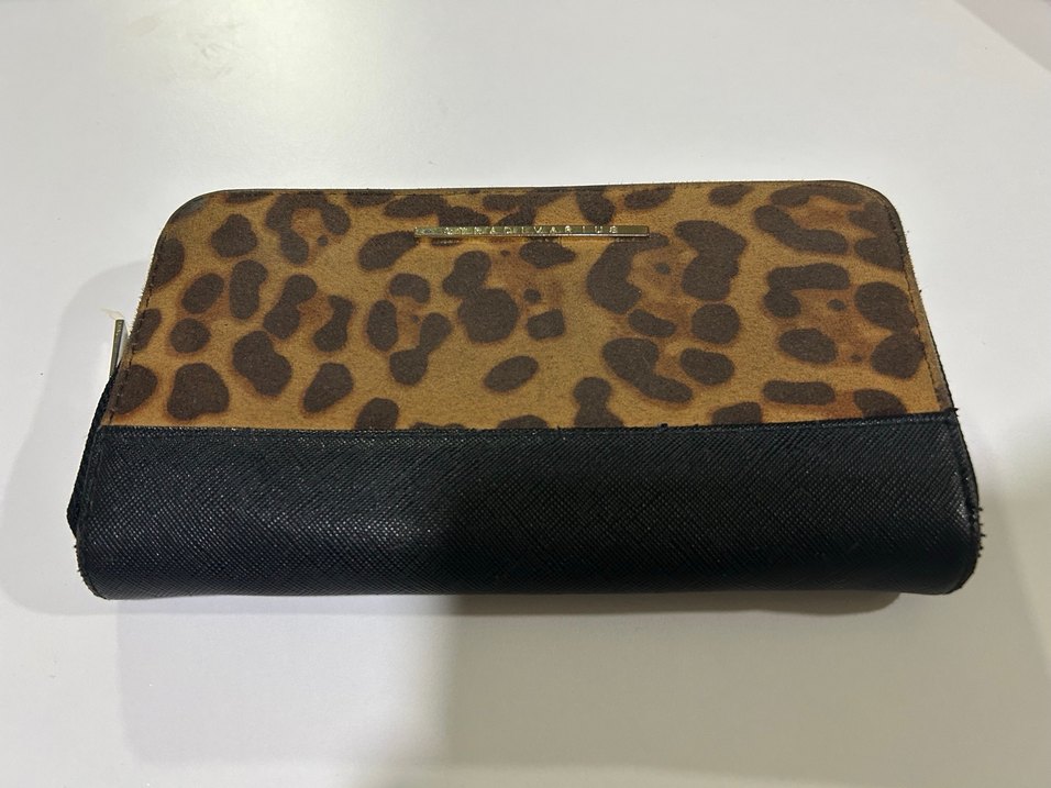 Bu kadın portföy cüzdanı, kahverengi deri ve leopar desenli kürk detaylarıyla modern ve Paris tarzını birleştiriyor.