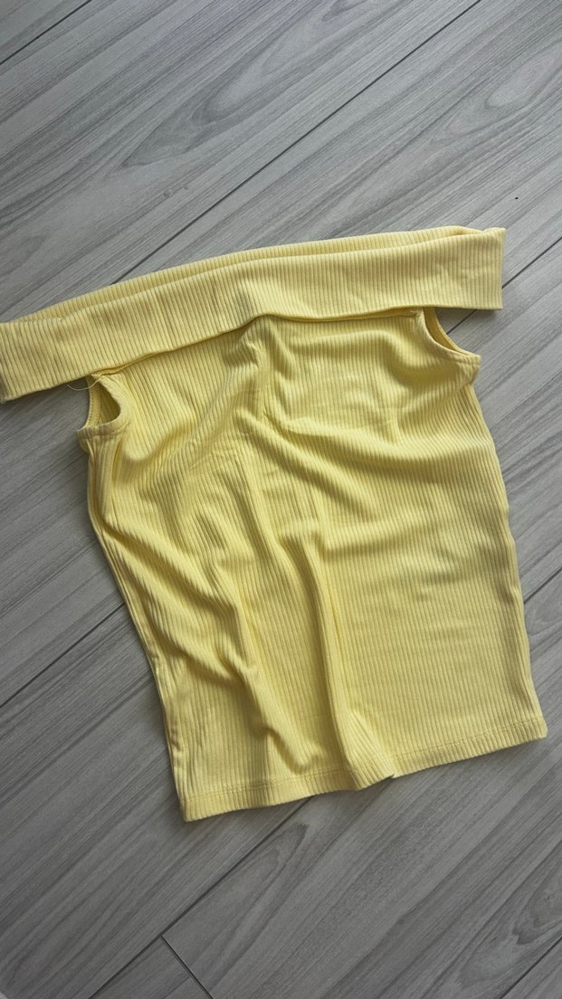 Kayık yakalı, kısa kollu sarı mini body. Yumuşak sentetik kumaştan, pilili detaylı, günlük sokak stili için uygun.