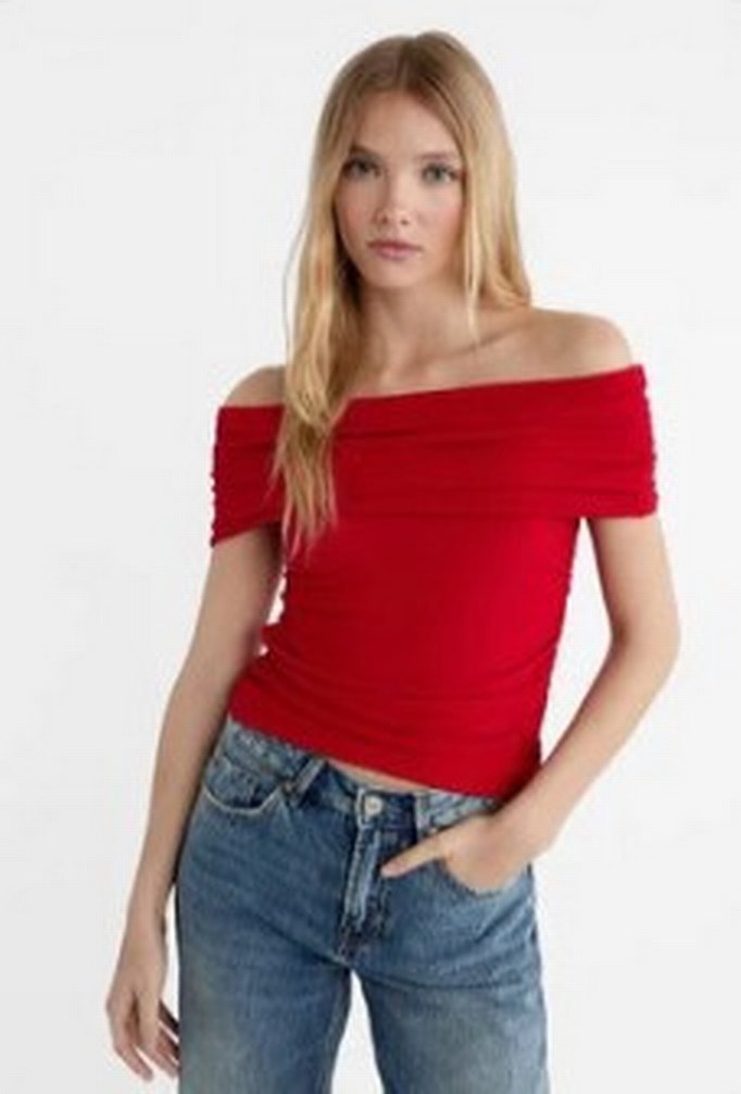 Stradivarius Kayık Yaka Kısa Kollu Bluz