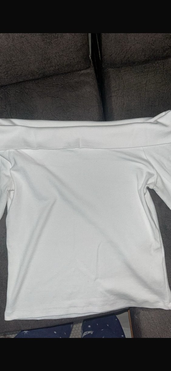 M beden Kadın beyaz tişört, kayık yaka ve kısa kolludur. Vücuda oturan, normal boyda ve sentetik kumaştan üretilmiştir. Minimalist, sokak stiline uygun, dış mekan kullanımı için idealdir.