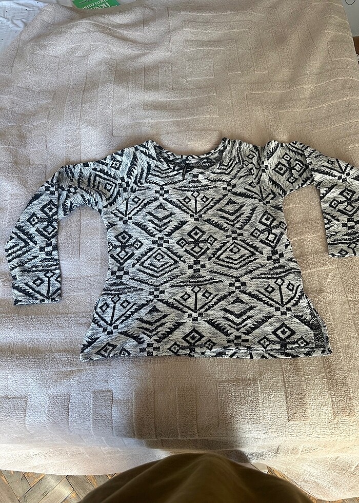 Small beden. Alt etek kısımları iki yan taraftan yırtmaçlıdır. Şık üste oturan bir kazaktır sayılı giyilmiştir