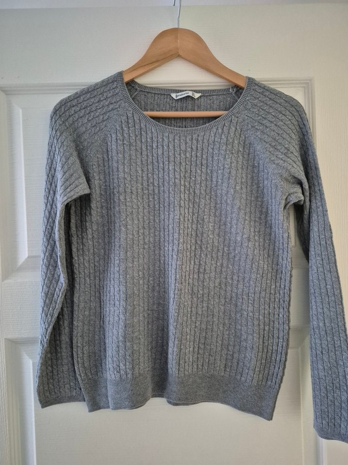 Stradivarius marka, L beden, örgü desenli, gri kazak. Sayılı giyilmistir.