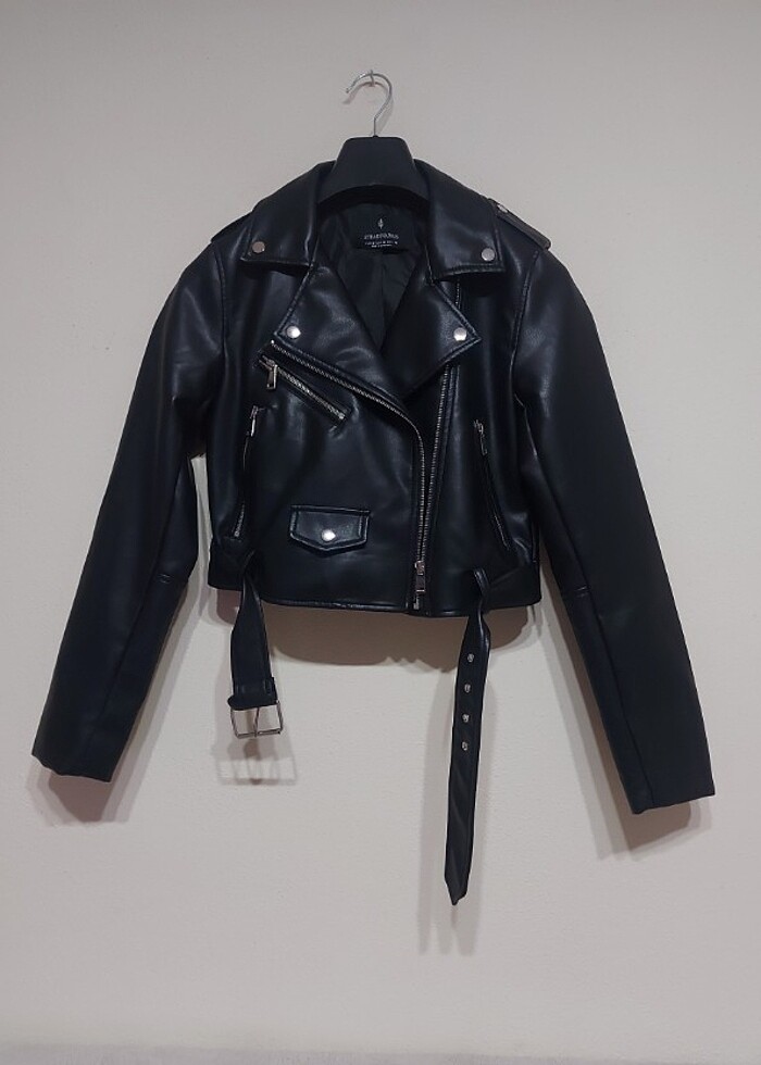 Stradivarius Kemerli Suni Deri Biker Ceket