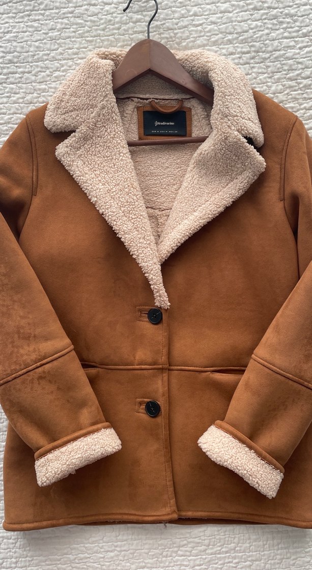 Stradivarius marka ,Kahverengi Kadın Süet Kürklü Kışlık Ceket