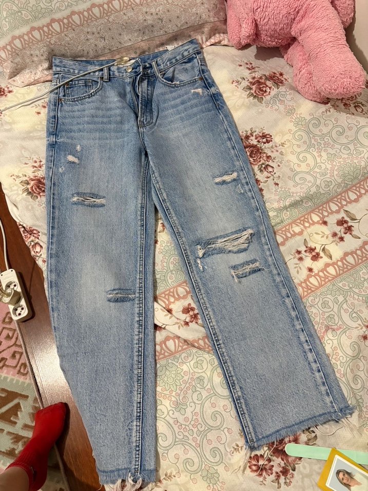 Mavi kot pantolon, rahat kesim ve normal boyda, bağcıklı ve batik desenli. Günlük rahat kullanım için uygundur. 36 bedendir
