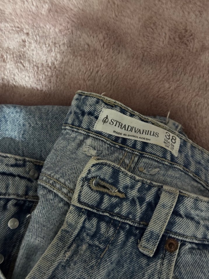 Stradivarius markalı, mavi baskılı denim kot pantolon, normal boy ve regular fit. Günlük sokak stiline uygun, kemer tokalı detaylar içerir. Beden 38.