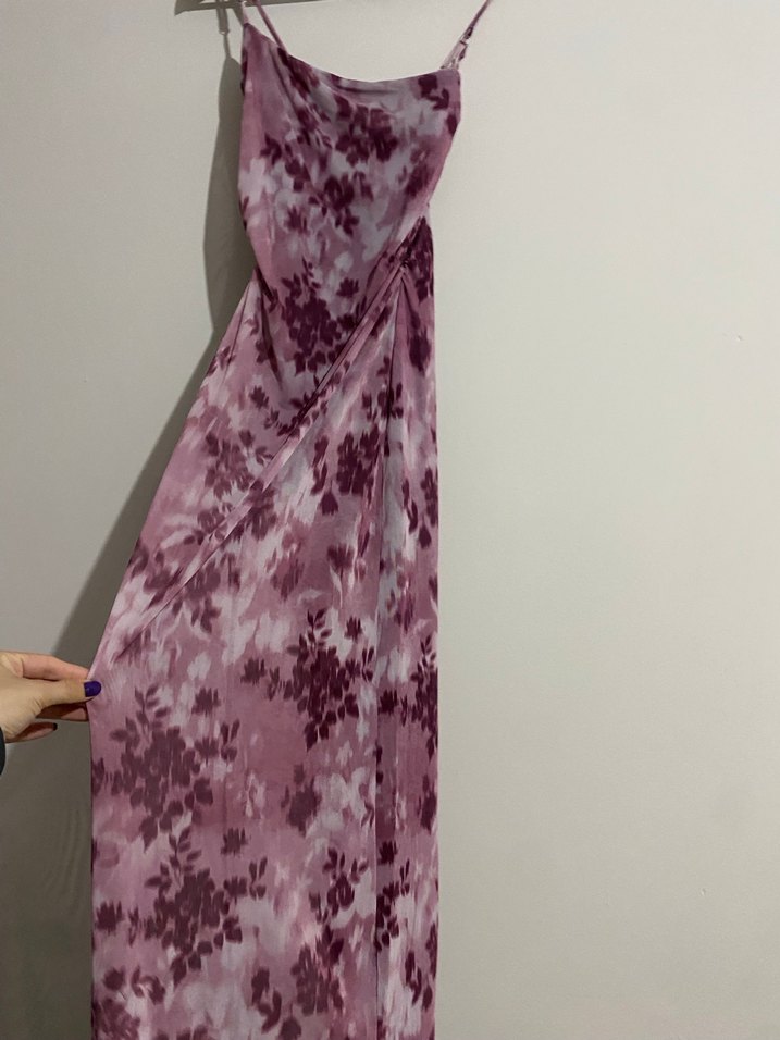 Stradivarius Mor Bağlamalı Uzun Elbise
