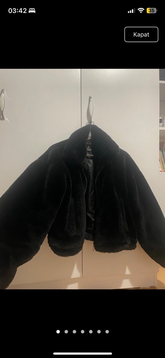 Siyah, kürk detaylı ve normal boy midi ceket. Notlu yaka ve uzun kollu, rahat kesim ve yumuşak kumaş ile günlük kullanıma uygun. Temiz ürün bazı kısımlarındaki tüylerinde değişmeler olmuş onları da ekledim