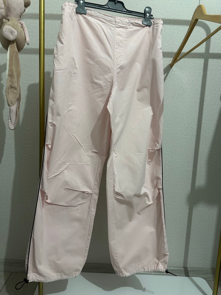 Pudra renkte, bol kesim kadın kumaş pantolon, sentetik yumuşak dokulu, rahat ve şık sokak tarzı için uygundur. ✨