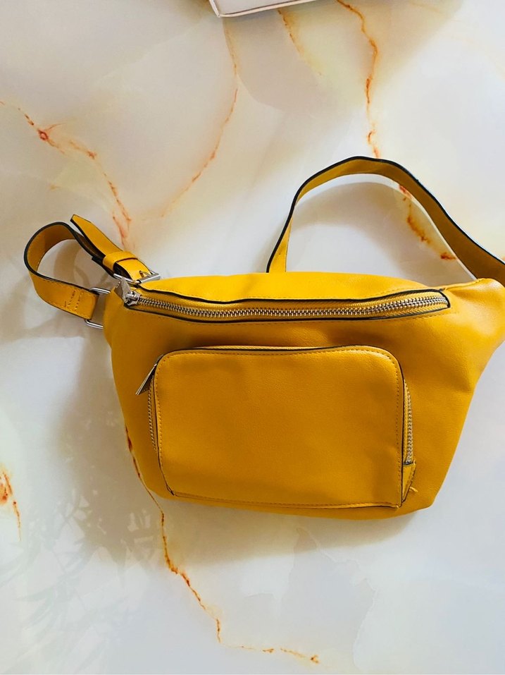 Stradivarius Sarı Deri Kemerli Kadın Bel Çantası